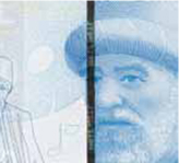 | 3 | Kılcal Lifler (Güvenlik Elyafları) | Orijinal banknot kağıdı içine, kağıdın imalatı aşamasında yerleştirilmiş; çıplak gözle görülemeyen ancak UV ışık altında mavi ve kırmızı parlama veren kılcal lifler bulunmaktadır. Sahte banknotlarda kılcal liflerin, baskı yolu veya fosforlu kalem ile taklit edilmeye çalışıldığı görülmektedir. |  | |  | |